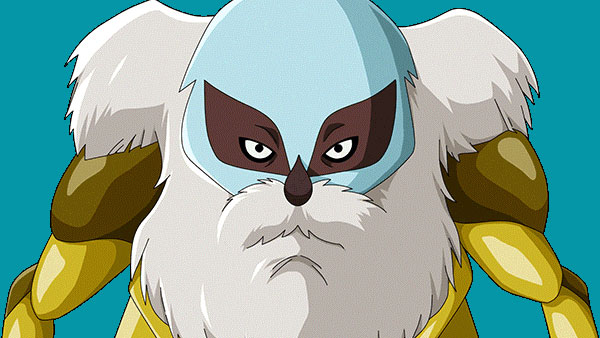 Il est vêtu d’une carapace dorée et marron qui le fait paraître pour une sorte de cafard qui se tient debout. Et cela est d’autant plus renforcé lorsqu’il se tient à quatre pattes.